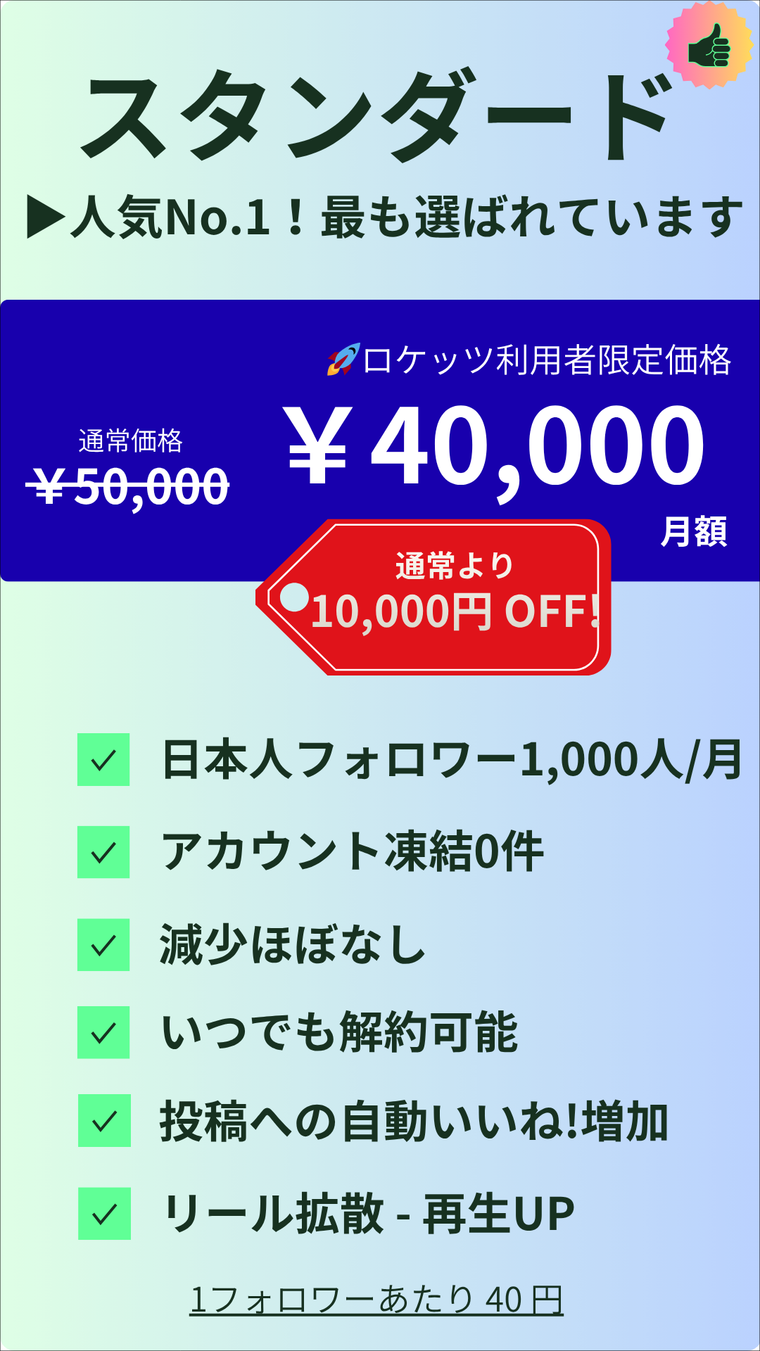 ロケッツご利用者限定!で通常価格より“ずっと”¥10,000円オフ! 2ヶ月以降の更新にも割引価格が適用!
